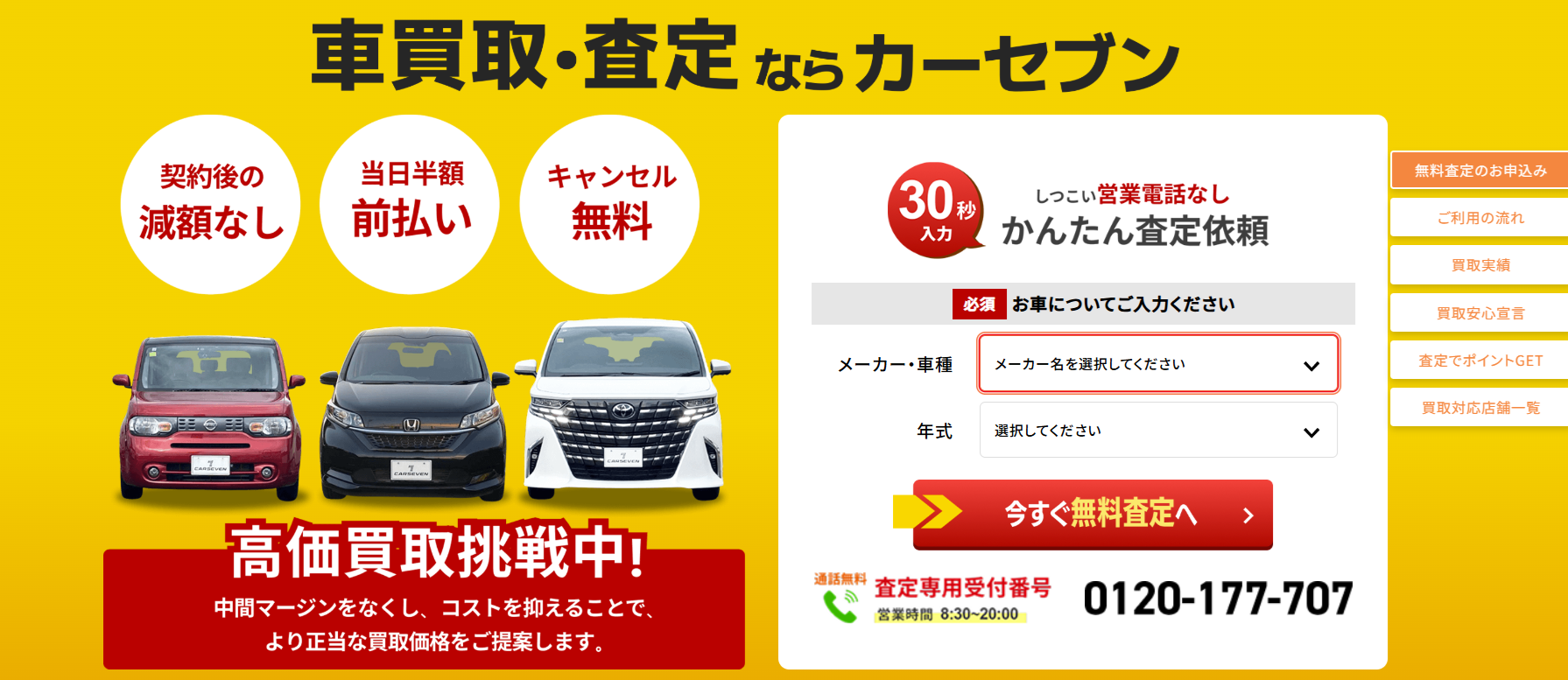 大きな特徴は「カーセブン5つの買取安心宣言」として以下を謳っていることです。