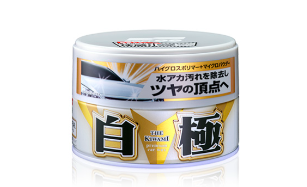 ホワイトのソリッドカラー専用に開発された半練りタイプのワックスとなっており、水垢の除去とワックス効果を一度の作業で実現できる効率性が特徴です。