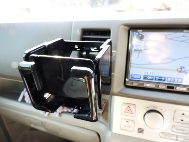 少々変わり種で、ドリンクホルダーに置くタイプのスマホホルダーです。