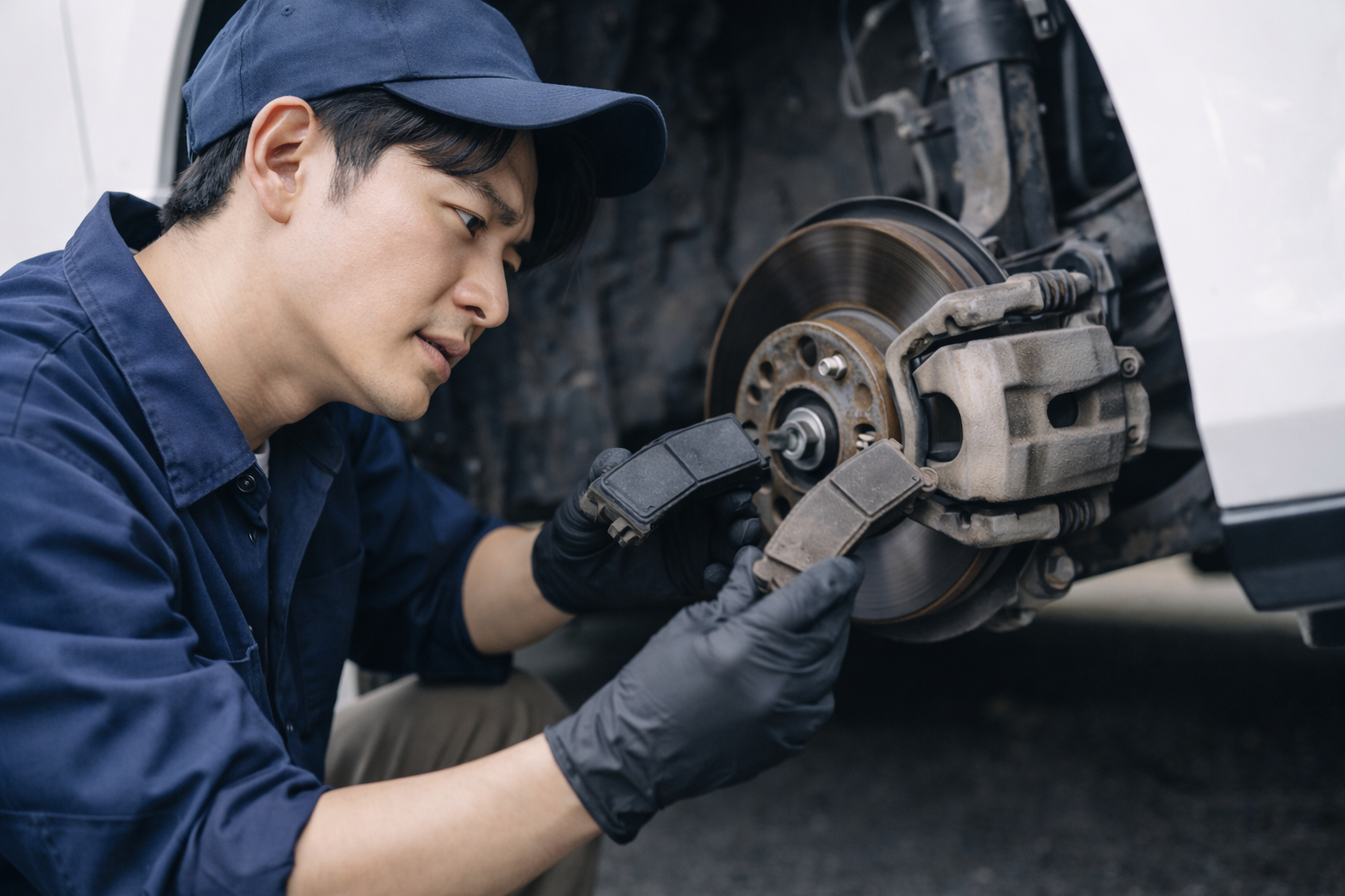ブレーキパッドは消耗品のため、定期的な点検が重要です。異音が出てからではなく、定期点検の段階で摩耗状態を確認しておくと安心です。
