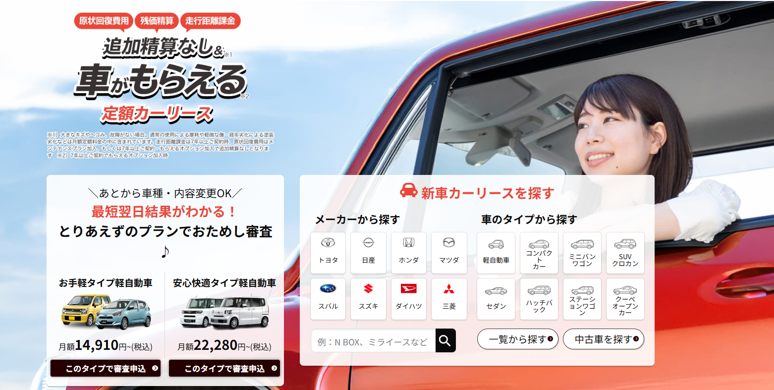 そして複数の信販会社と提携があるため、審査に通りやすいカーリース会社と言われています。