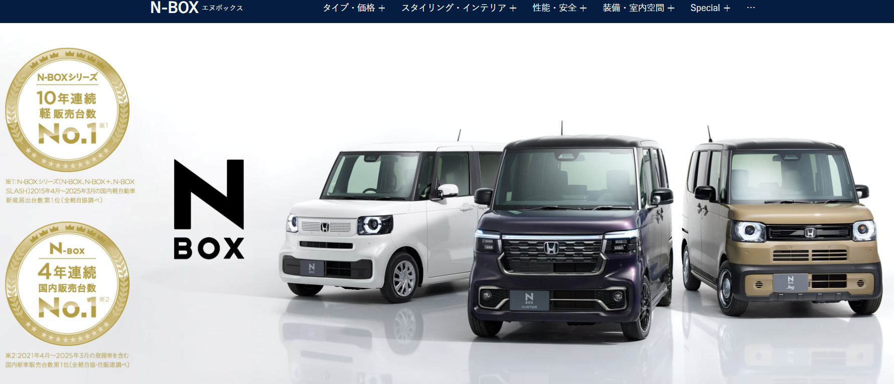 ホンダのN-BOXは2021年4月~2024年3月の期間、国内販売台数ナンバー1を3年連続で獲得した人気の軽自動車です。