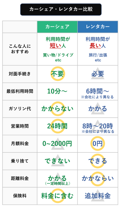 カーシェア・レンタカーの比較