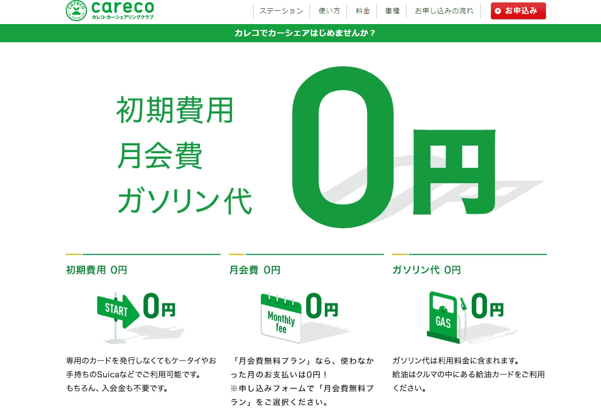 カーシェアで車に乗る際に、月会費無料で利用できるのです。