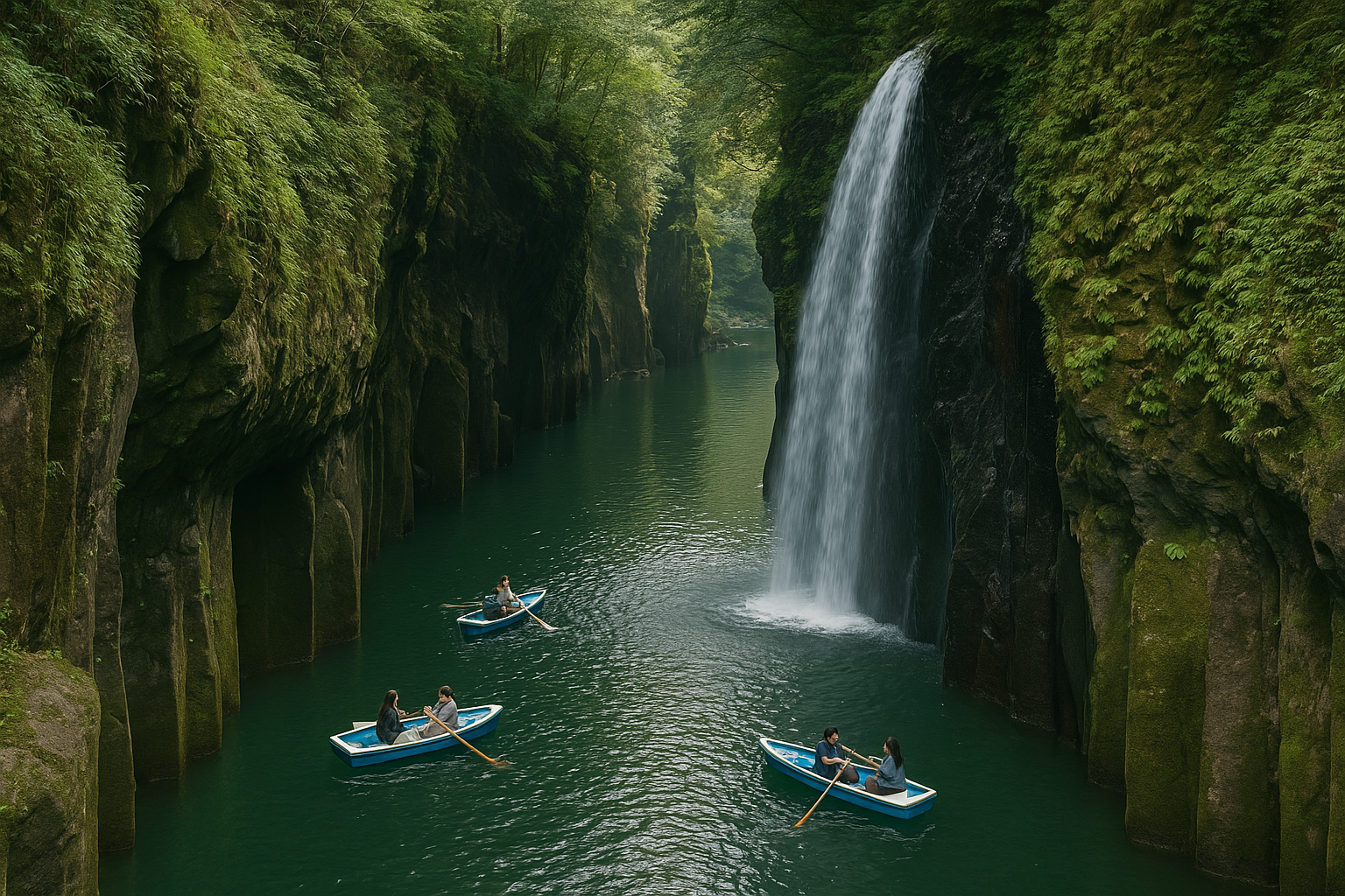 阿蘇山系の侵食によって生まれたV字峡谷が作り出す絶景が魅力の高千穂峡。公共交通でも行けるものの本数や時間帯に制約があり、カーシェアを活用すれば自由に到着時間を決められます。ボートに乗って眺める真名井の滝や神秘的な雰囲気に包まれる天岩戸神社など、周辺には見所が多いため、車でまとめて巡ると効率的です。
