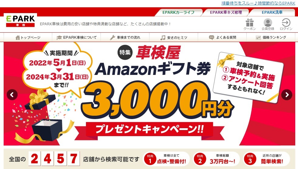 EPARK車検は、全国約2,000店舗から車検業者を検索できる車検予約サイトです。