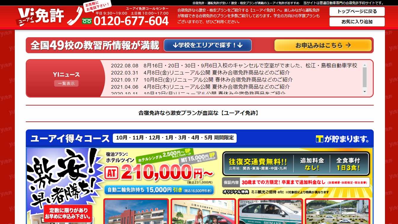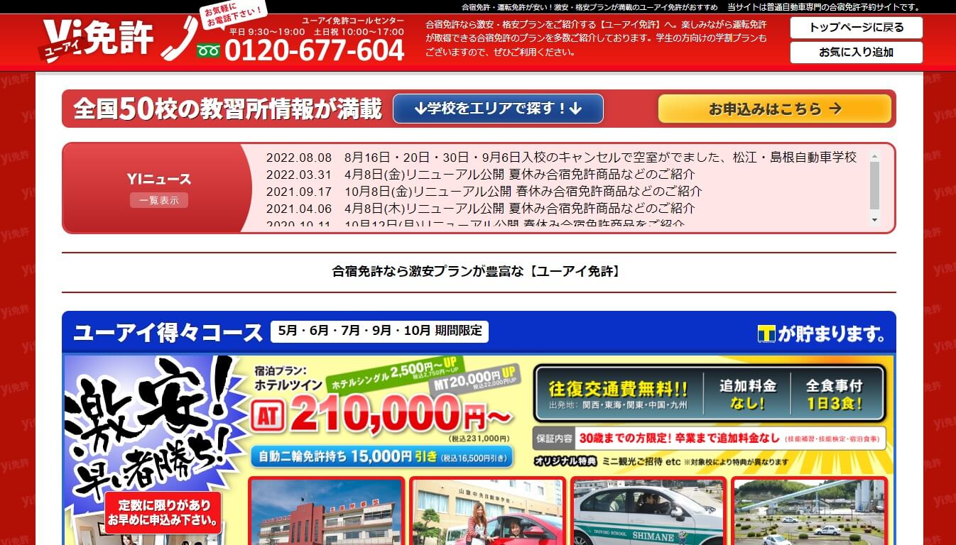 おすすめ合宿免許料金の安いランキング2位は、ユーアイ免許です。