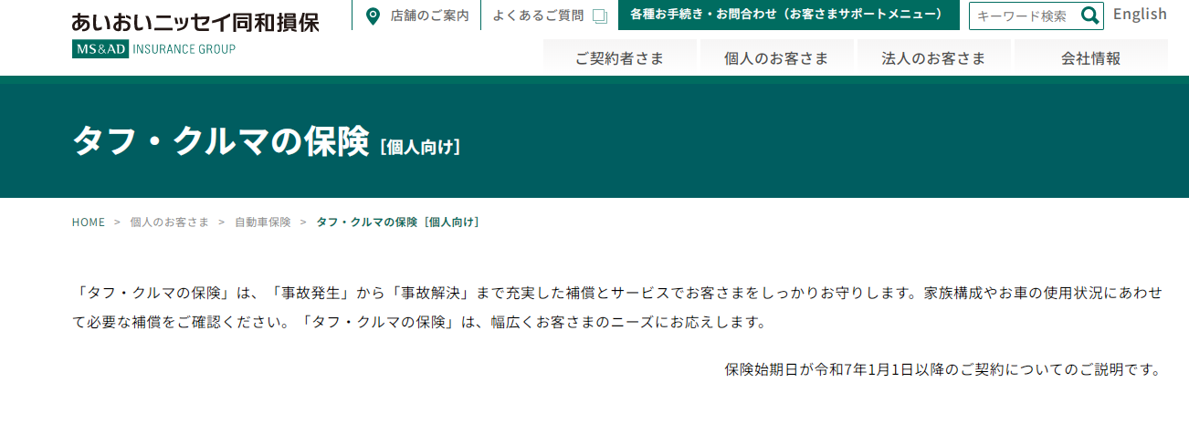 あいおいニッセイ同和損害保険(タフ・クルマの保険)