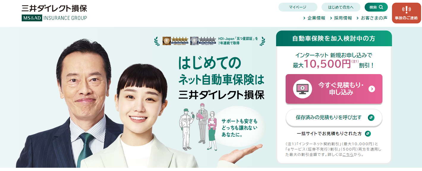 三井ダイレクト損害保険(強くてやさしいクルマの保険)