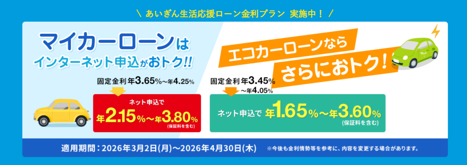 | マイカーローン名称 | 愛知銀行マイカーローン/エコカーローン |