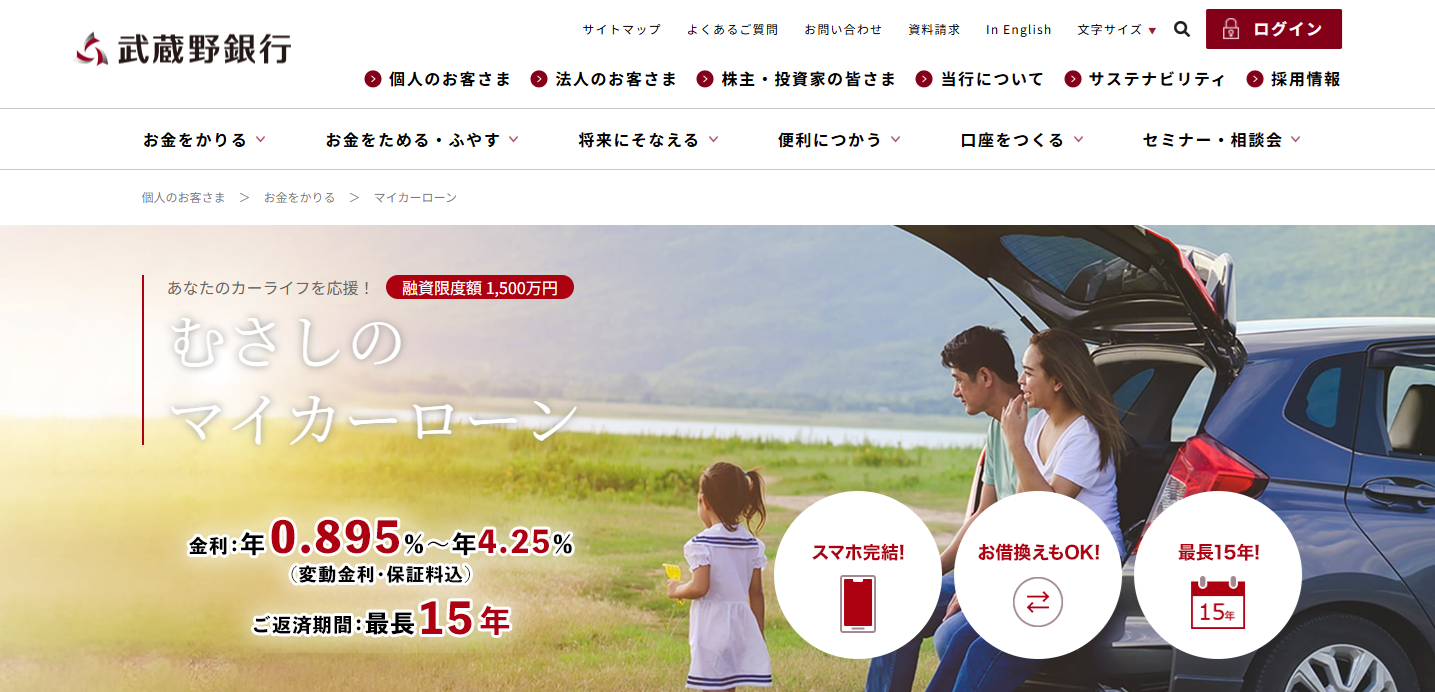 ②武蔵野銀行「むさしのマイカーローン」
