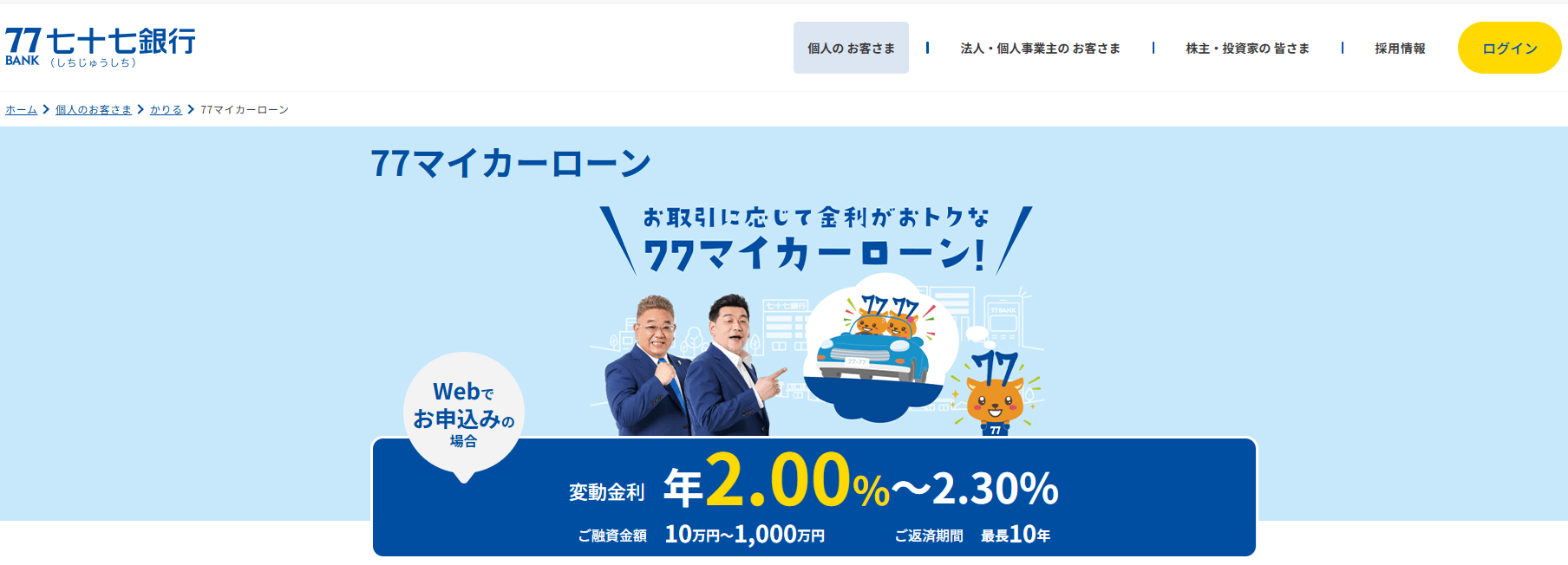 | マイカーローン名称 | 77マイカーローン |
