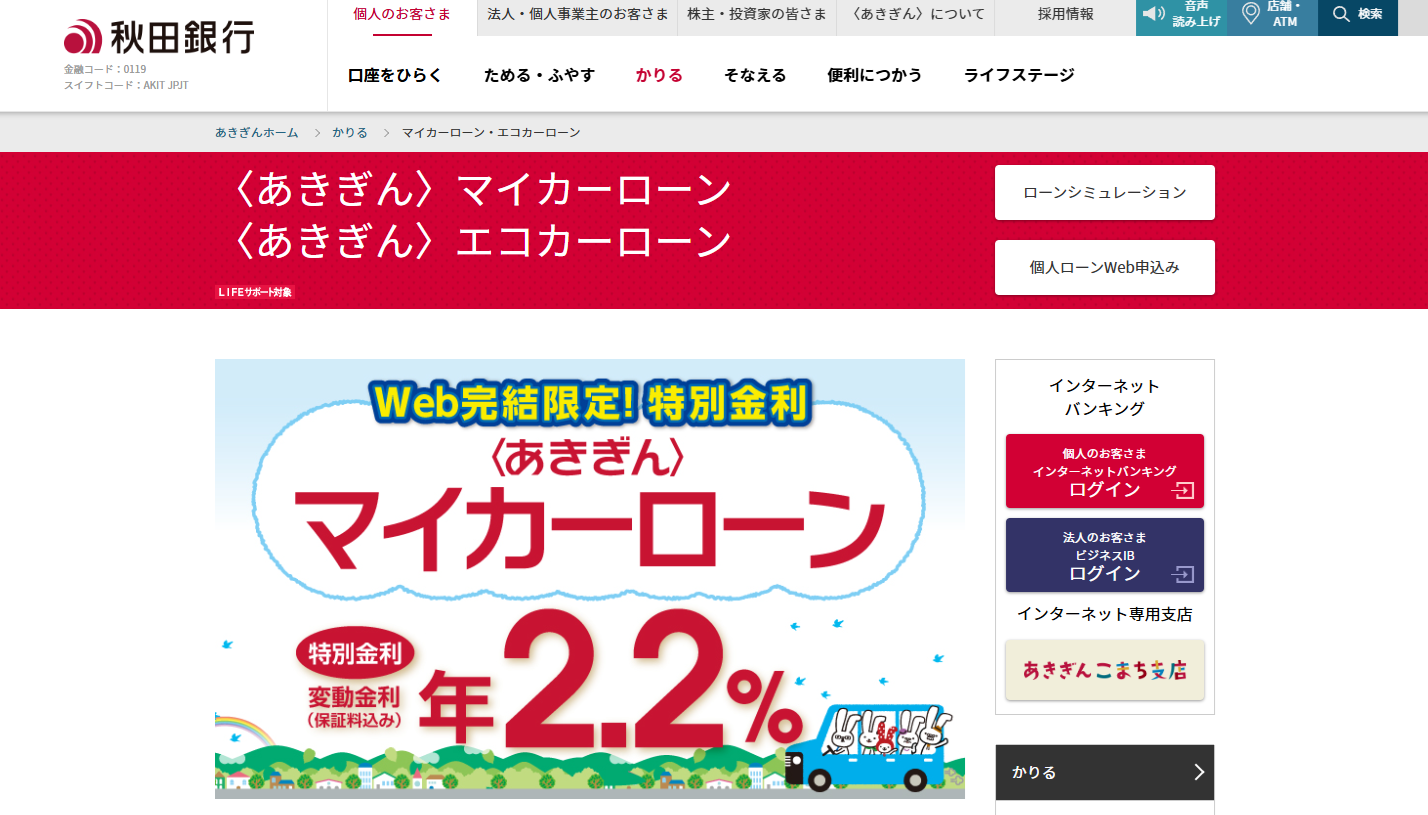 ④秋田銀行「あきぎんマイカーローン」
