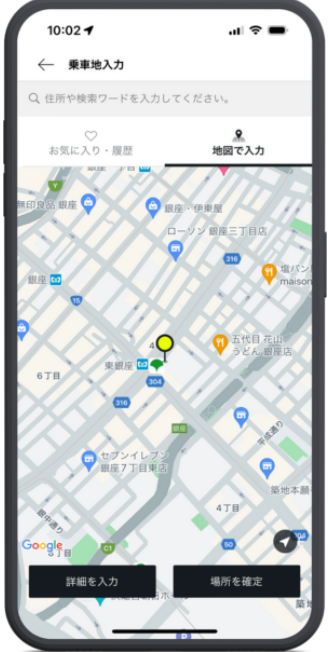 スマホのアプリから位置を指定してタクシーを呼べます。