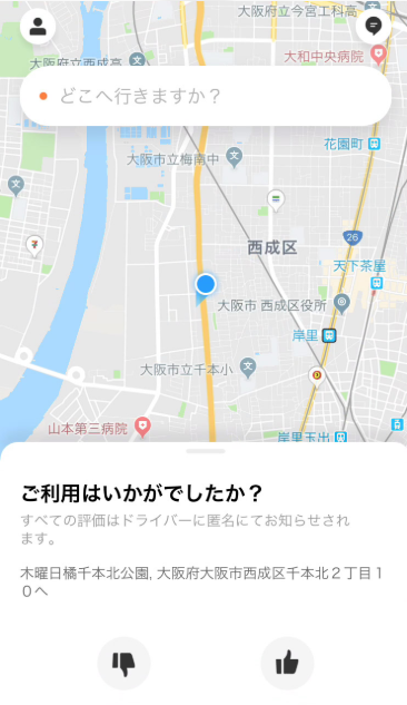 アプリを使って迎えに来てもらい、目的地まで連れて行ってもらうという認識で問題ありません。
